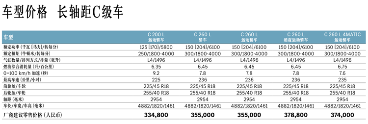 新车尺寸为4882/1820/1461mm,轴距为2954mm,依旧保持不变。此外,新车还将提供三种不同样式的18英寸铝合金轮毂,其中C200L运动版/C260L/C260L运动版将标配18英寸多幅式铝合金轮毂,而C260L皓夜运动版将提供18英寸AMG五幅铝合金轮圈。内饰部分与现款车型保持一致,新车将匹配第二代MBUX智能人机交互系统支持27种语言交互,并且增加“畅心醒神”等多种自然主题。并且还增加了高德定制导航,以解决传统豪华汽车品牌在车机导航方面的不便。