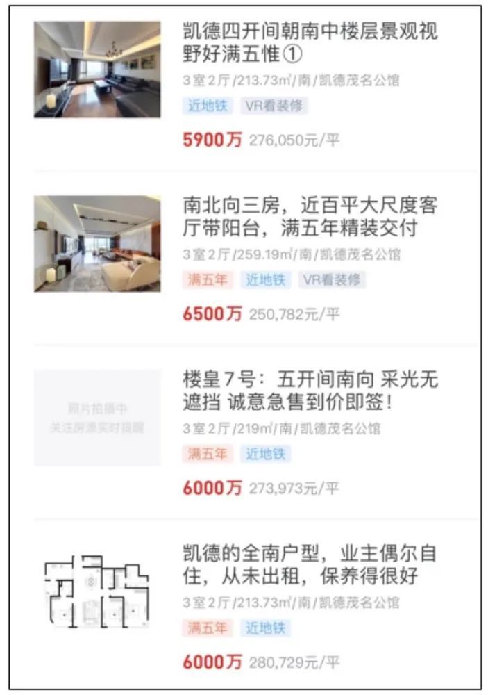 凯德茂名公馆之所以热度这么高,一二手倒挂是一大原因。目前,凯德茂名公馆二手房有4套在售房源,挂牌均价高达27万/㎡,而它本次加推的新房均价为16.8万/m²。一二手价差约10万,已经是非常夸张的倒挂了。