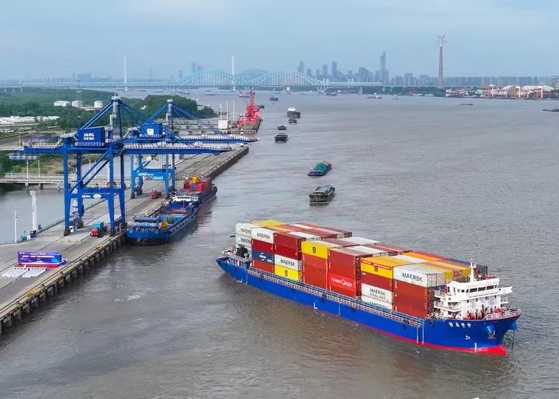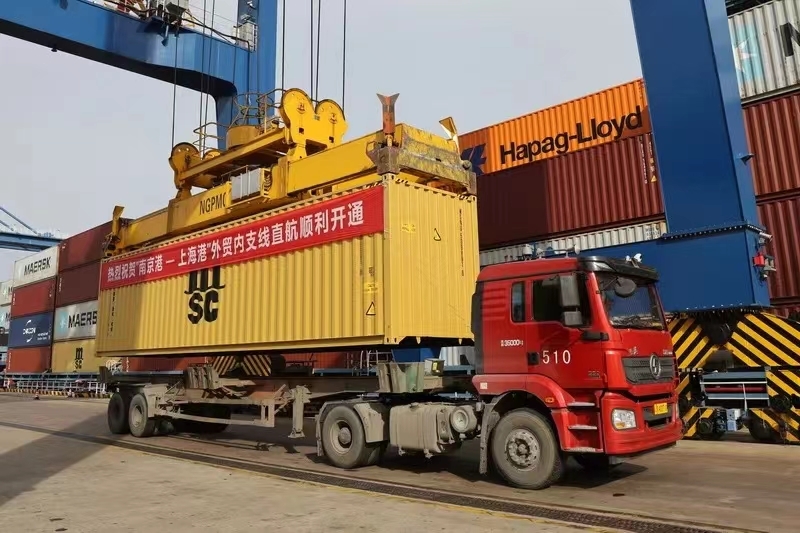 南京港,长江12.5米深水航道终点港,是内陆与海港间货物江海中转的重要桥梁。2023年,南京港发往上海港的集装箱量约118万标箱。此次直航开通,是南京港整合内部资源、加快打造更具特色“水运江苏”、提升区域集装箱航运物流资源配置能力的又一项重要举措。两港点对点直达,将进一步加强南京港与上海港的联动效应,有效解决腹地区域集装箱货源直航舱位不足短板,满足广大外贸企业运输需求,为打造南京都市圈“最佳出海口”再添新动能。