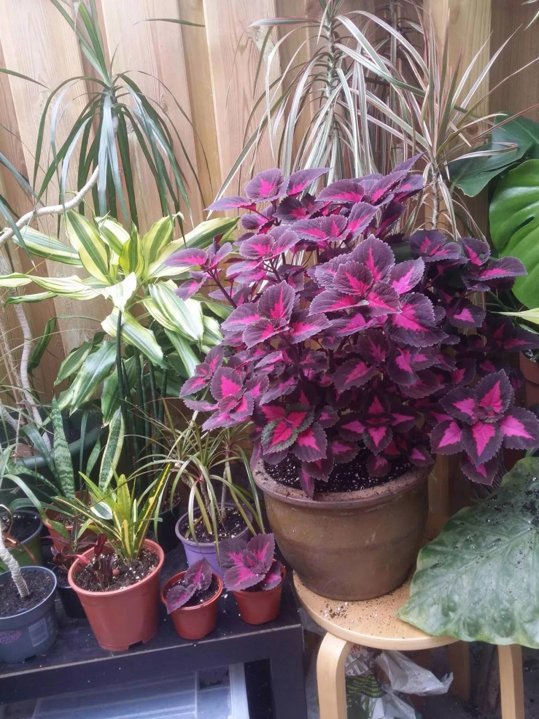 上图为吊竹梅、观叶秋海棠、锦紫苏、四季海棠和花叶芋等