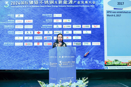 在Muchtazar演讲结束后,印度尼西亚镍矿商协会秘书长Meidy Katrin Lengkey在本届大会上发表了议题为“印尼镍产业的政策更新和概况及印尼镍矿的价格基准”的精彩演讲。