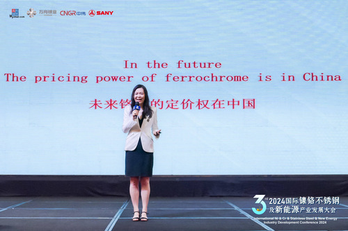 首先王慧英女士为大家展示全面清晰的铬铁产业结构,从铬铁成本结构进行解析,并串联铬铁产品结合展示,逐渐延伸讲解高碳铬铁下游不锈钢等行业。