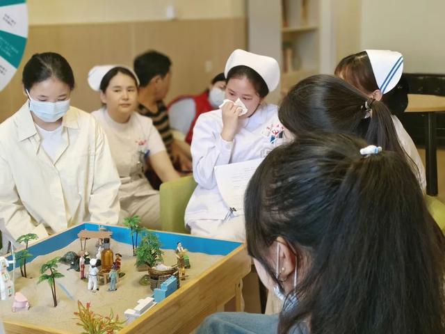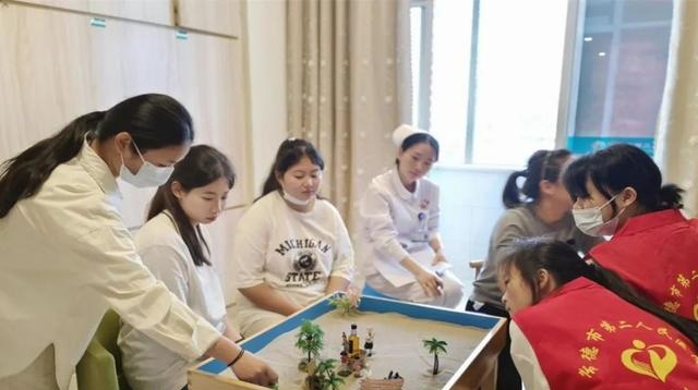 (▲护理人员参加沙盘游戏进行减压)
