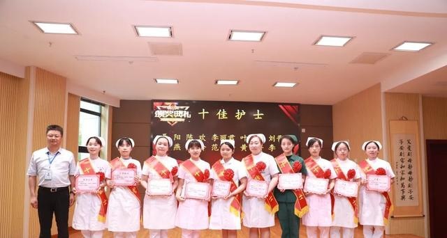 (▲常德市第二人民医院党委书记马明祥为十佳护士获奖人员颁奖)