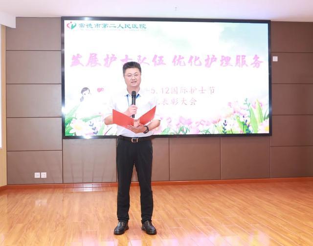 常德市第二人民医院党委书记马明祥代表医院党委向奋斗在护理工作岗位上的白衣天使致以节日问候和崇高敬意,向获奖人员表示热烈祝贺,同时提出三点希望: