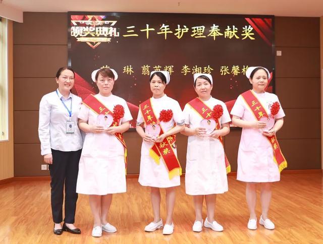 (▲常德市第二人民医院副院长朱春凤为三十年护理奉献奖人员颁奖)
