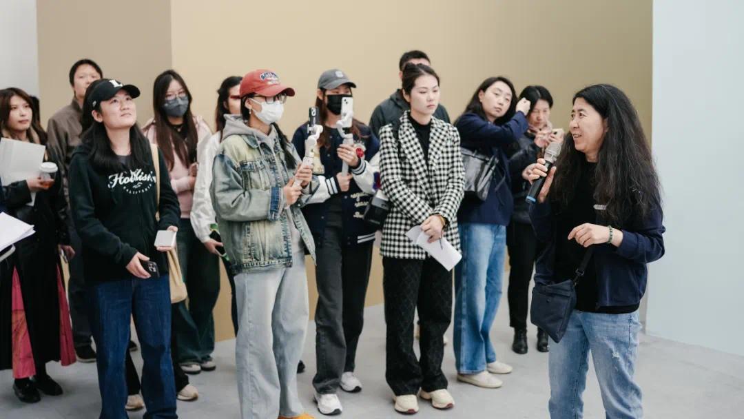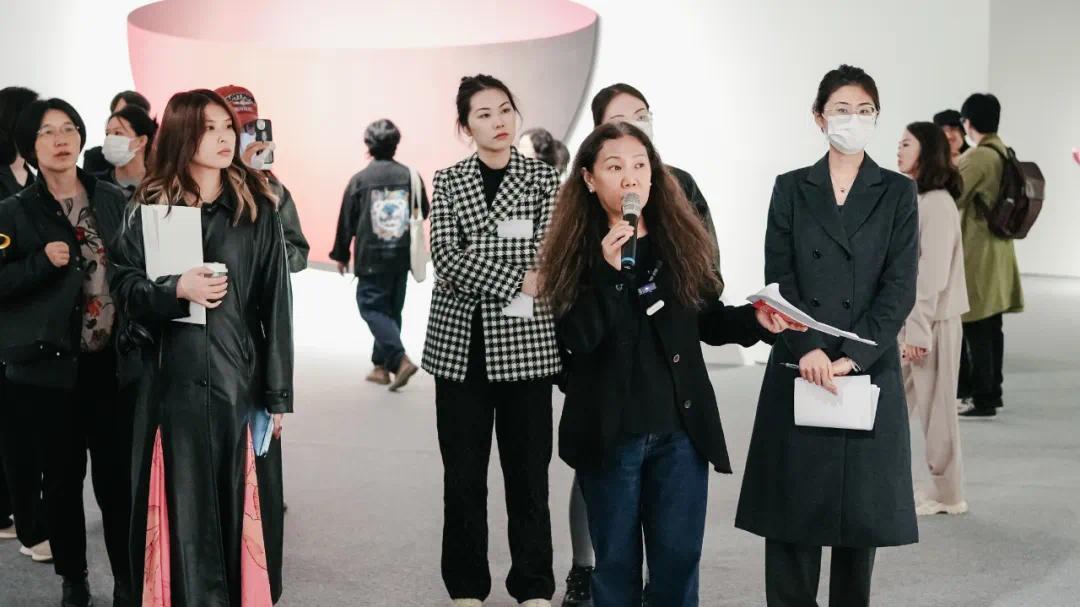 ▲“时间的铭刻:中国当代艺术收藏的经验和转变”展览策展人在现场导览