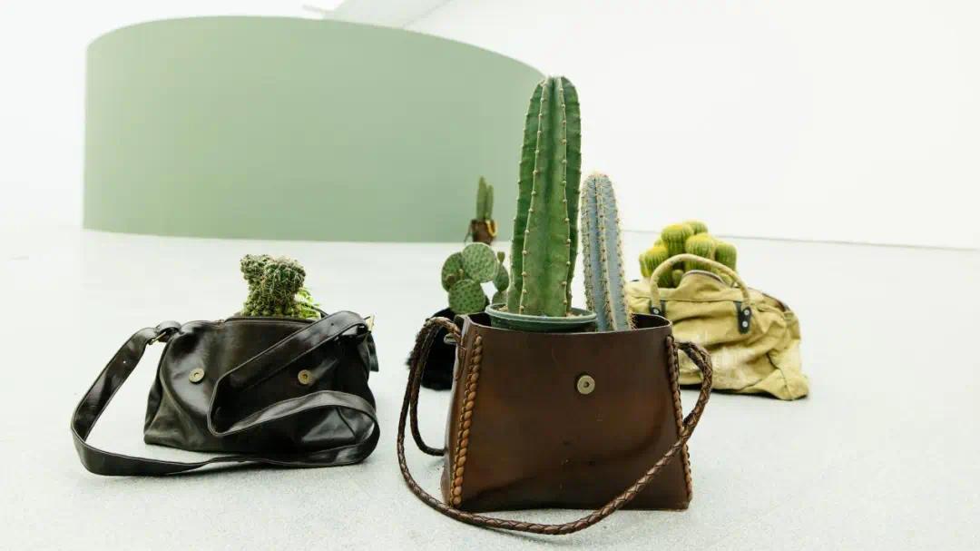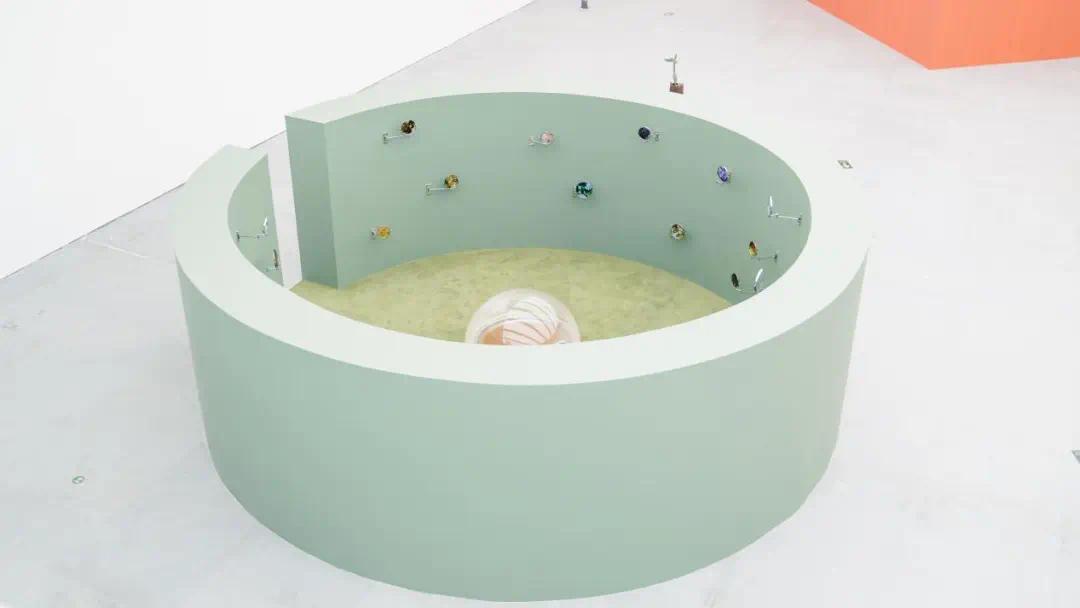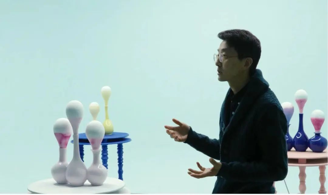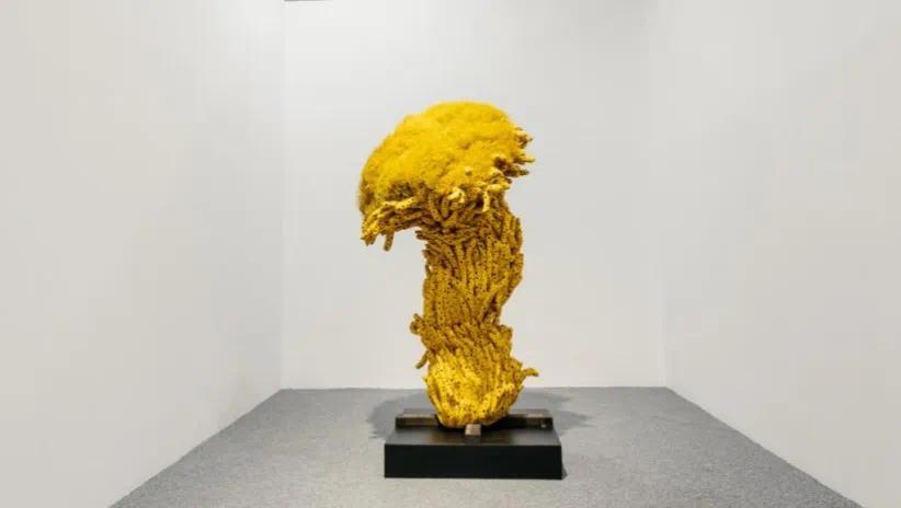 欧鸣利⽤⽯膏、陶瓷和⽔,试图在雕塑中创造⼀个个犹如⽣命般存在的有机实体。⽯膏如同花卉⼀般被养植在陶瓷容器中,表⾯的颜⾊和肌理在反复湿润、⼲燥的过程⾥,展现出令⼈惊喜的变化和流动感,同时在空间中营造了一种⽣机盎然的亲密氛围。