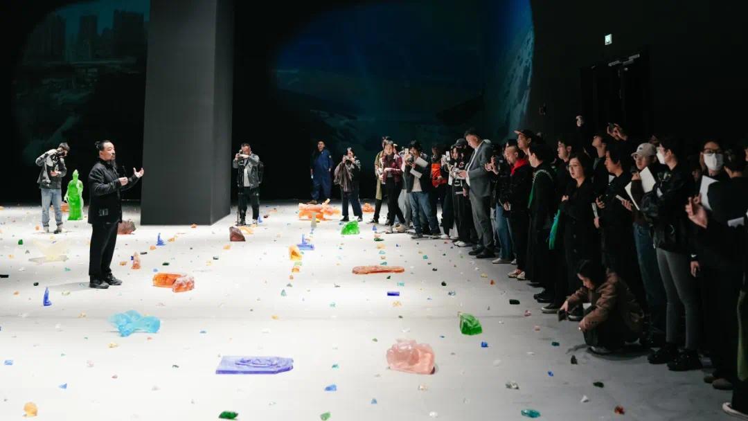 ▲ 开幕现场,艺术家宋冬致辞并导览