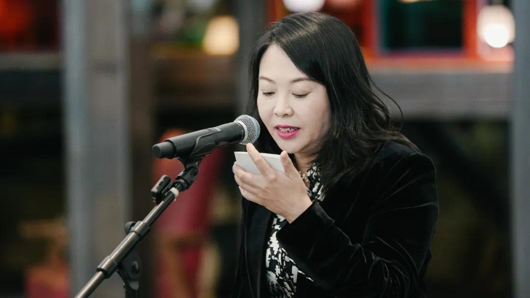 ▲ 开幕现场,艺术家尹秀珍致辞并导览