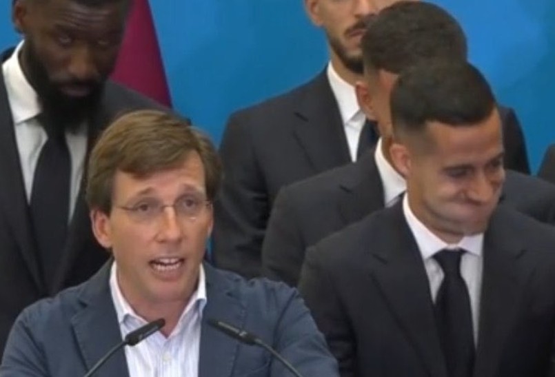 当地时间本周日,皇马进行了西甲夺冠的庆祝活动,他们来到了市政厅,马德里市长何塞-路易斯-马丁内斯-阿尔梅达发表了演讲。
