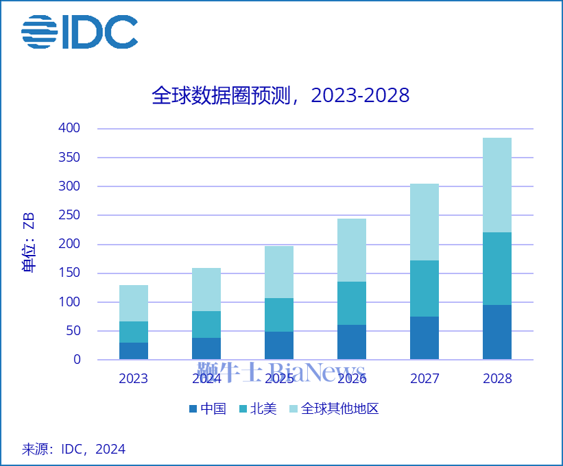 报告预测,全球2024年将生成159.2ZB数据,2028年将增加一倍以上,达到384.6ZB,复合增长率为24.4%。
