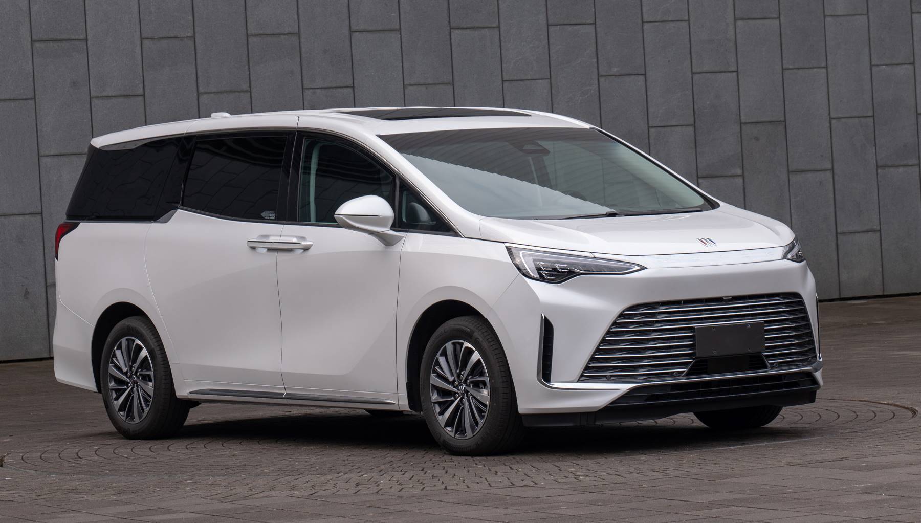 造型方面它和燃油版的世纪没多大差别,大尺寸梯形格栅,细长的车灯、尾灯,经典MPV车体造型。而且还是有两个版本,低配的7座,用了相对常规的设计,高配的6座和4座Avenir,都是有泪眼式的大灯。
