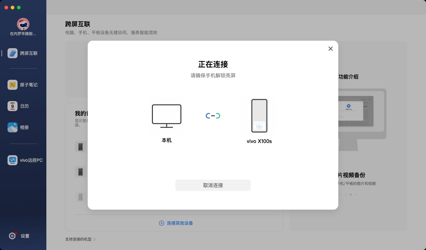 (使用Mac电脑上的vivo办公套件连接vivo X100s)