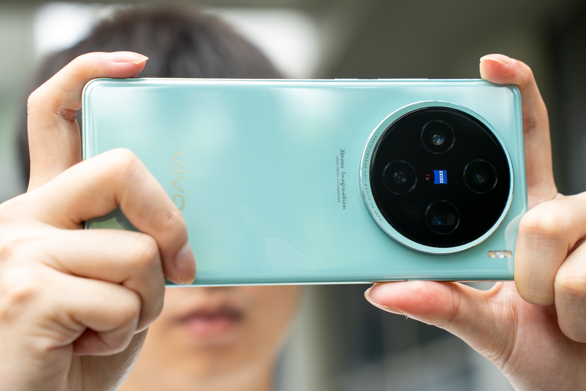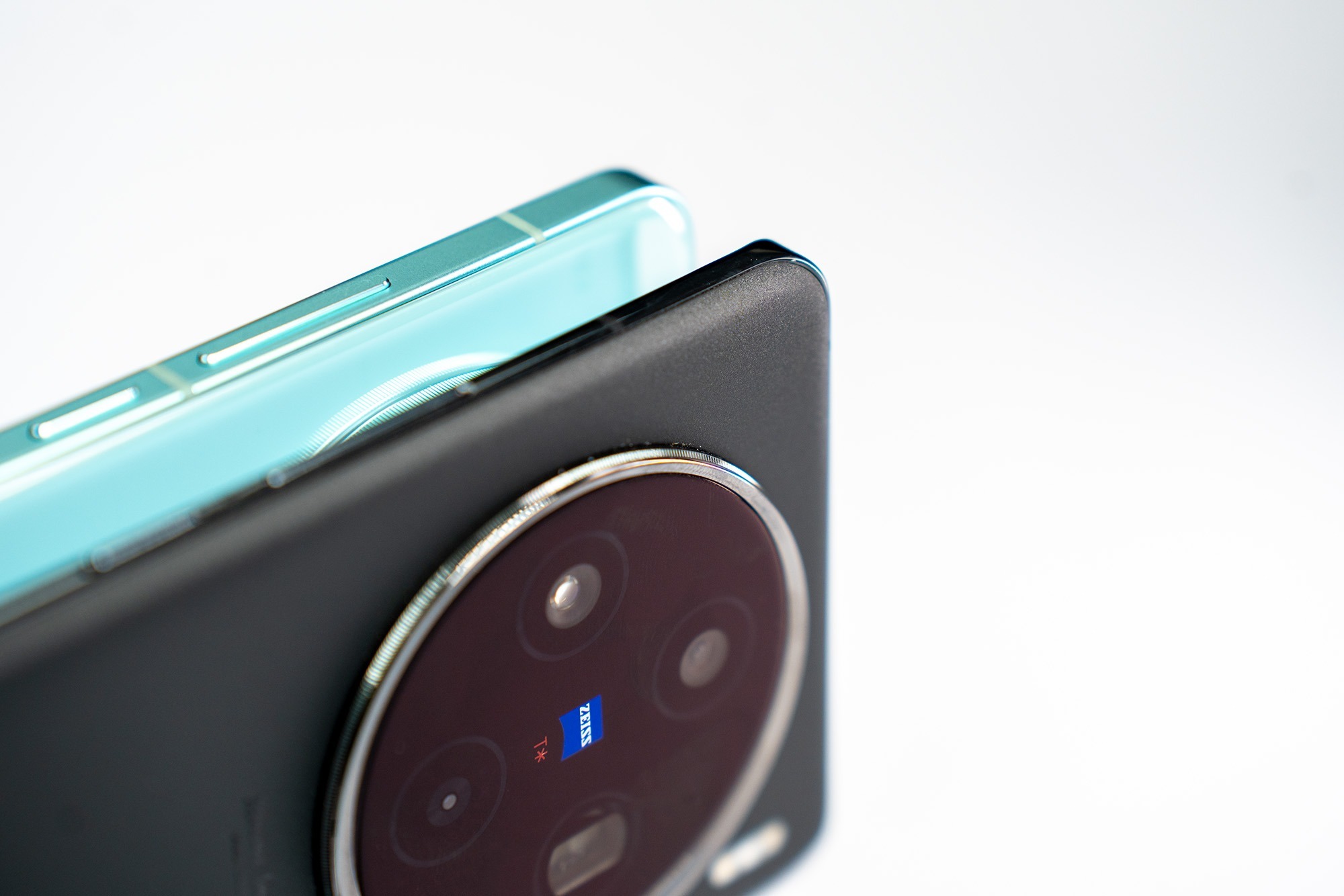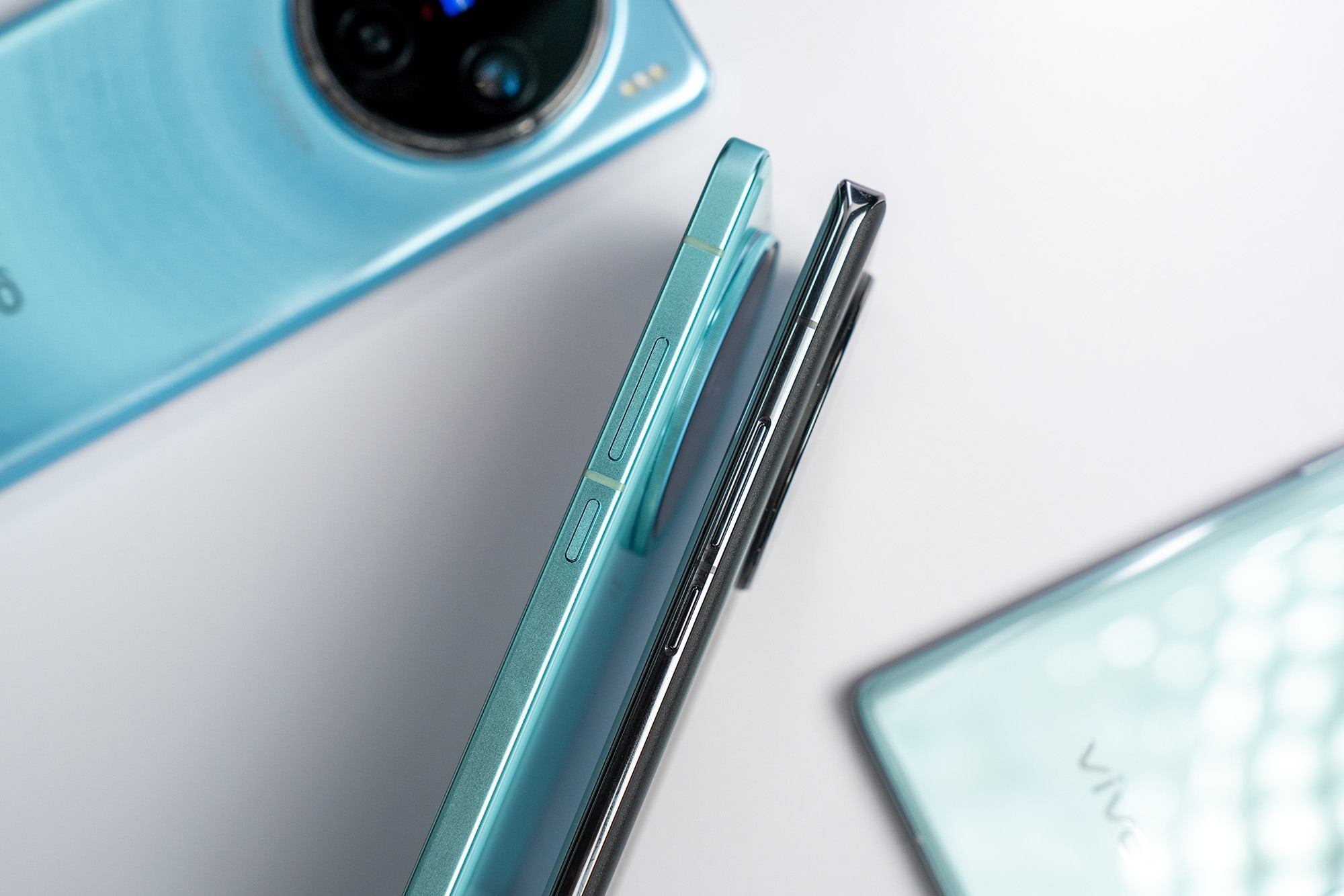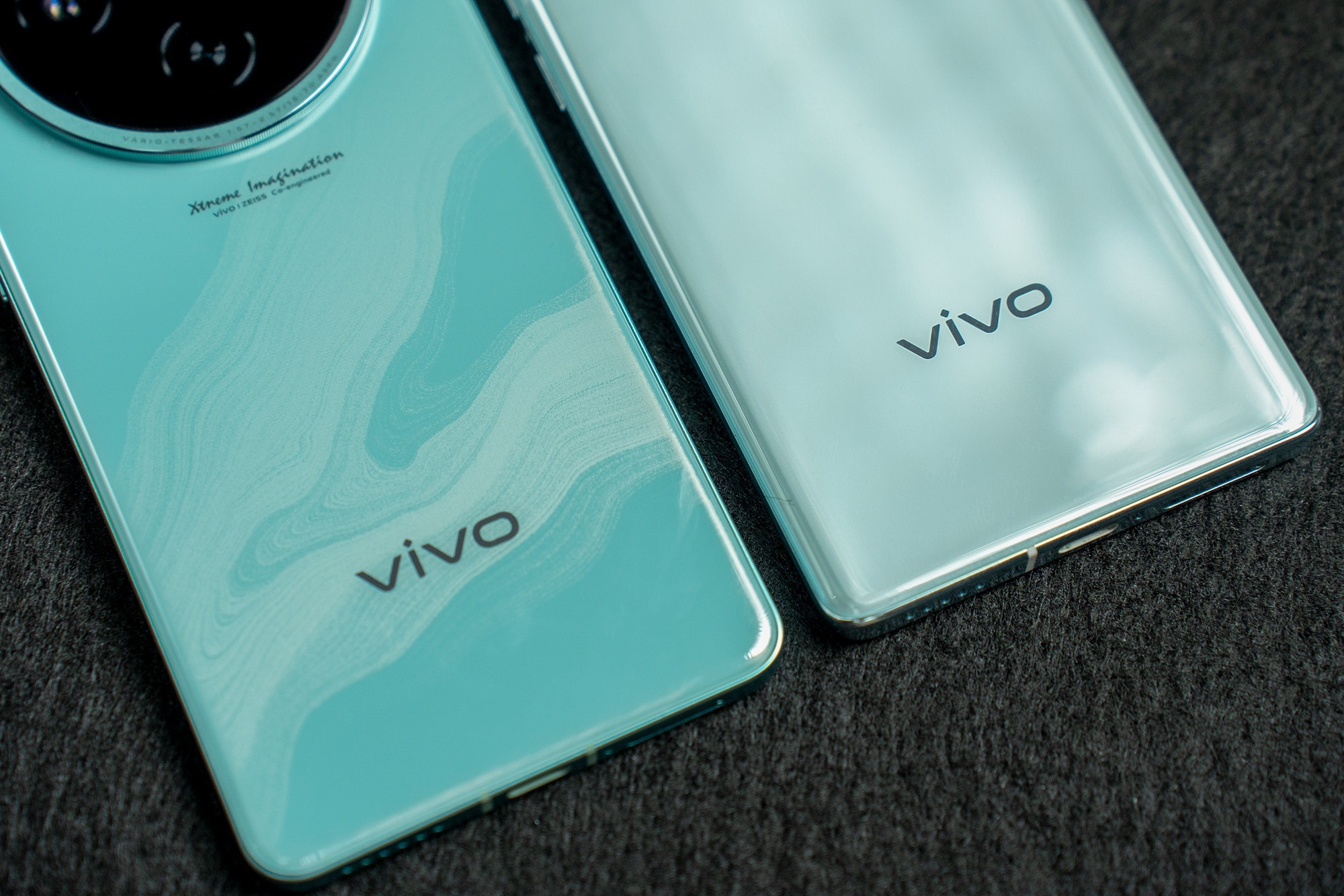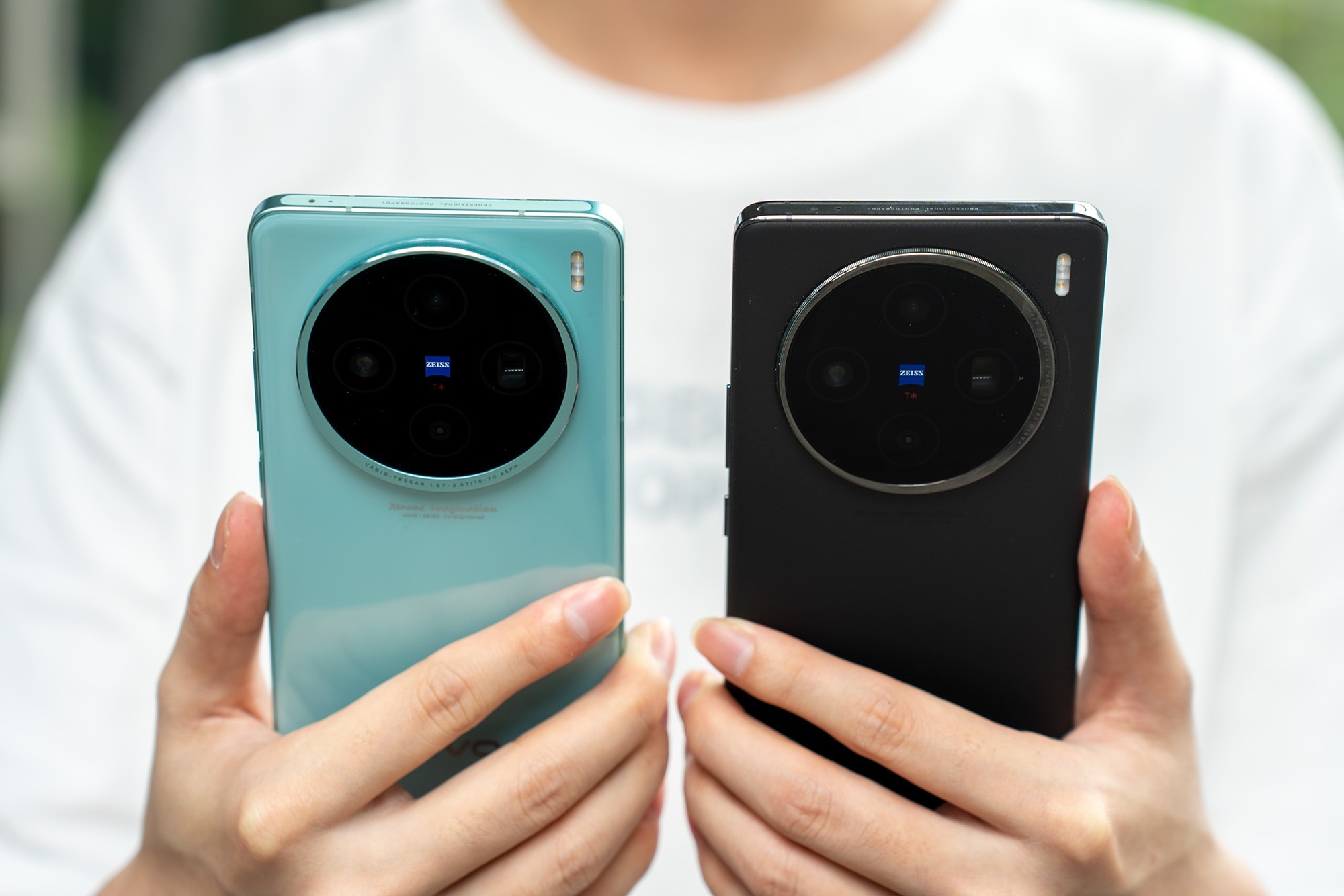 (左为青云色的vivo X100s,右为青漾色的vivo X90s)
