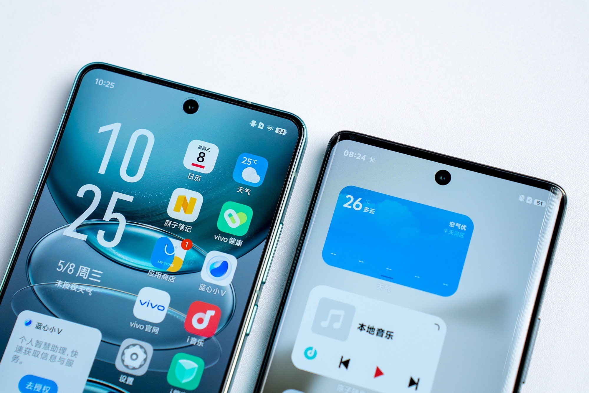(左为直屏vivo X100s,右为曲屏vivo X100)
