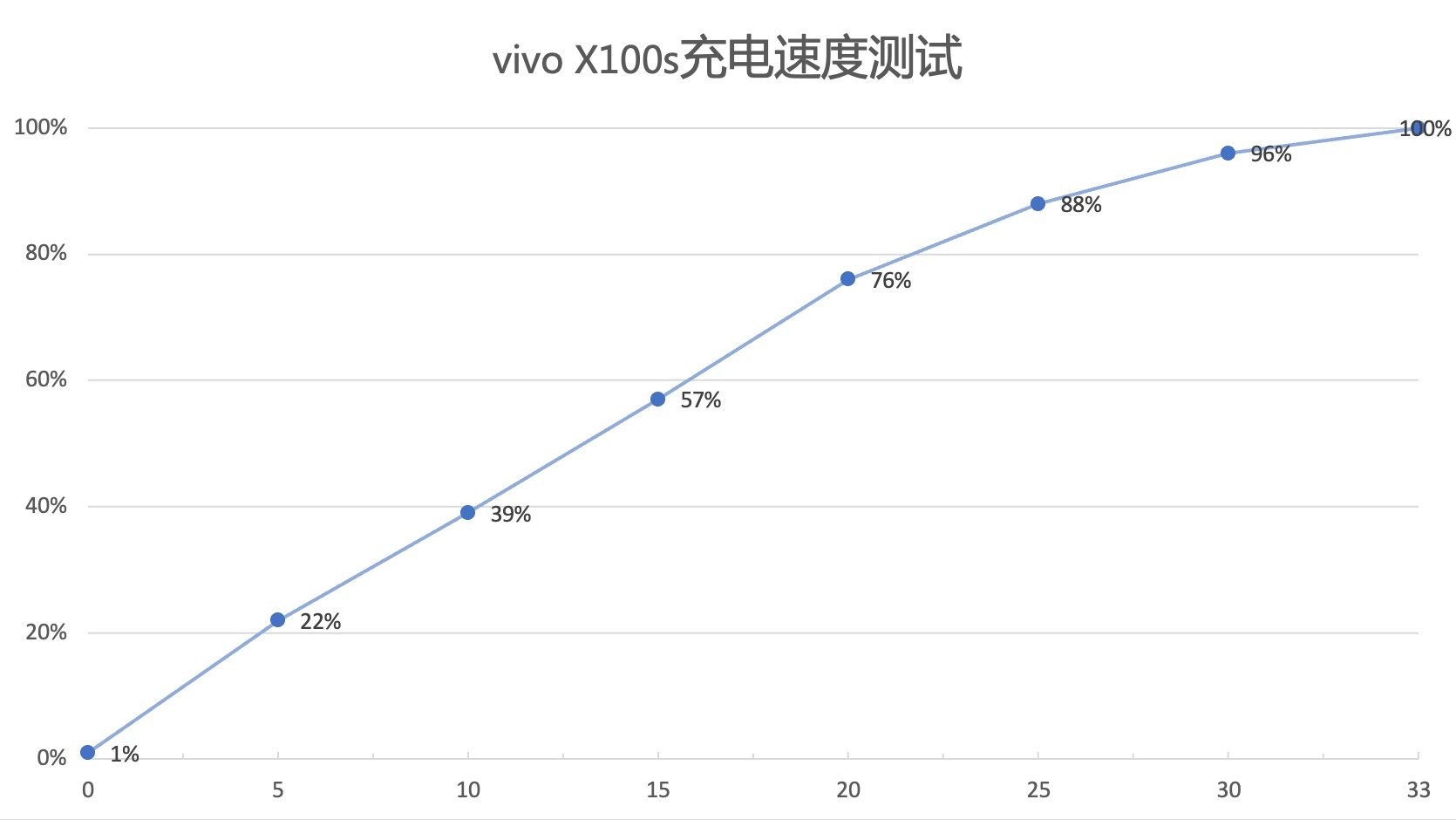在性能提升的情况下,我们这几天保持游戏(《王者荣耀》、《和平精英》)、娱乐(长/短视频平台)、购物、社交聊天等中高强度使用场景,平均能剩下30%以上的电量,能够让我有较为安心的续航保证。再加上100W双芯闪充,从1%到100%,大概需要33分钟左右。