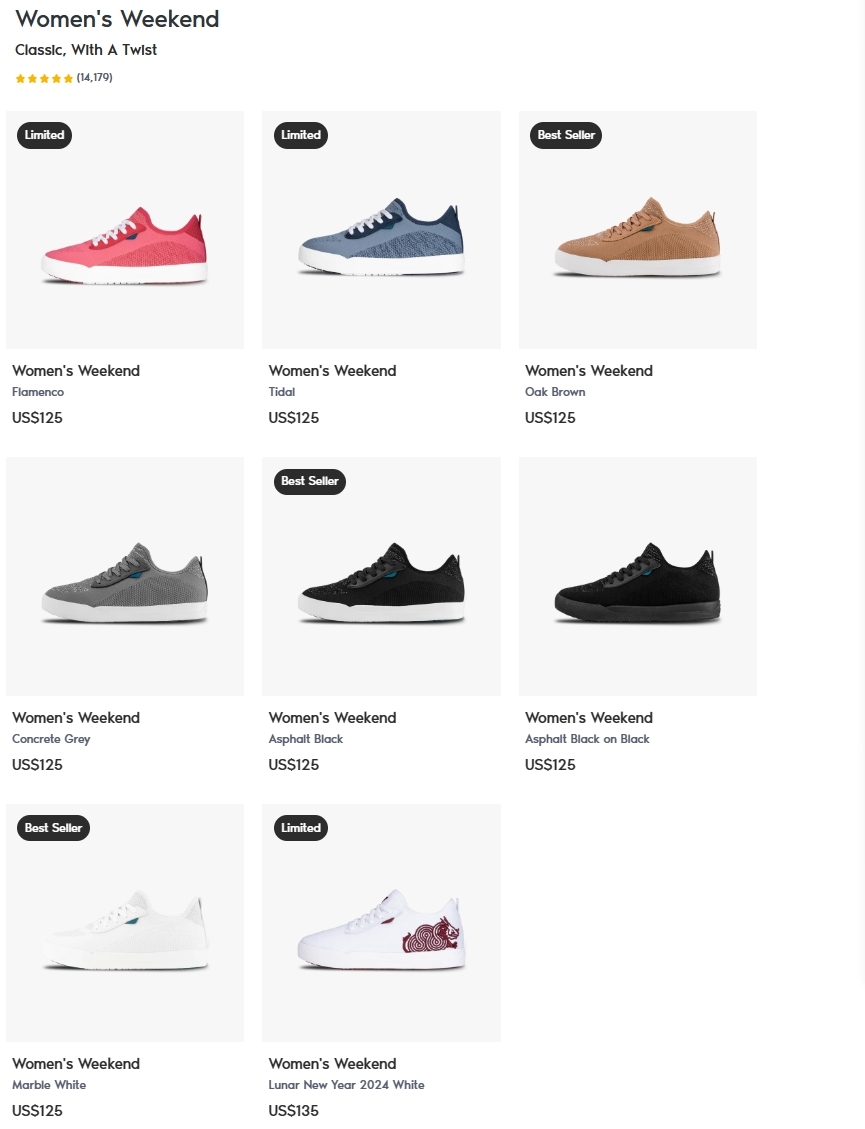 目前,Vessi旗下产品涵盖女性、男性、孩子,在鞋类产品之外,还将产品线延伸到防水服装、背包、手套、袜子等。其中女性鞋款已有10个系列,包括Stormburst低帮、Stormburst高帮、Weekend Chelsea、Everyday Classic、Cityscape Classic、Weekend、Everyday Move Slip-Ons、Soho Sneaker、Boardwalk Slip On、Alta High Top,售价115美元起,其中冬季高筒靴Alta High Top售价最高,为190美元(约1373元);品牌官网显示,最受消费者青睐Weekend系列,售价为125美元(约903.35元)。综合看来,Vessi定位中高端。