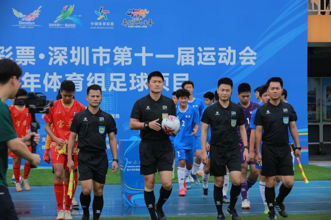 深圳市第十一届运动会青少年体育组足球项目男子U17组决赛,5月12日晚在深圳市青少年足球训练基地进行。南山区队在90分钟比赛中与罗湖队战成0比0,点球大战4比3获胜赢得该组别冠军,国际级裁判员李海新为本场比赛执哨,比赛用球是由卡尔美提供的2023亚洲杯用球。在当天进行的另外两个组别也决出了名次,龙岗区男女U15队双双捧得冠军奖杯。至此,本届市运会青少年体育组足球项目男女子共10个组别的比赛全部结束,龙岗区、宝安区、南山区夺得团体总分前三名。