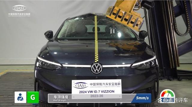 车内乘员安全指数是衡量一款车型在碰撞事故中对车内乘员保护能力的重要指标。在这一评价体系中,ID.7 VIZZION凭借其卓越的性能和出色的设计,在驾驶员侧正面25%偏置碰撞、侧面碰撞、车顶强度以及座椅/头枕4个项目中均表现优秀,以0缺陷的满分获得最高的(G)优秀评价。