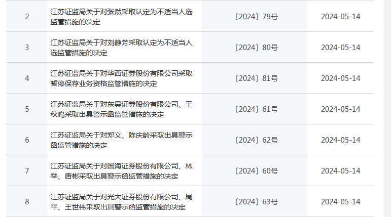 江苏证监局对国海证券、光大证券、华西证券、东吴证券及相关人员开出“罚单”,华西证券还被暂停保荐业务资格6个月。具体如下: