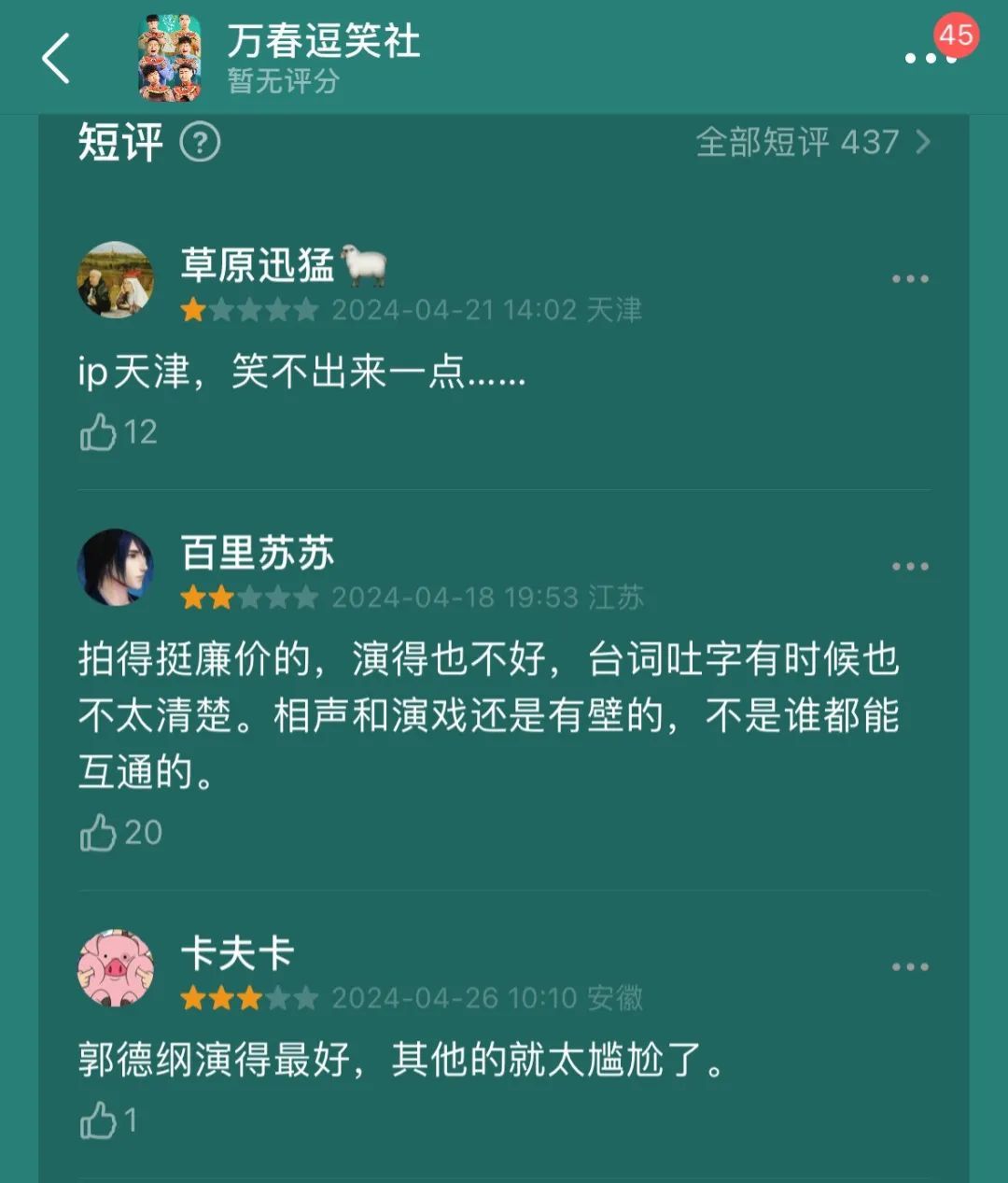 因此,同属“板凳单元”,同属大佬参与的《万春逗笑社》难免被期待。