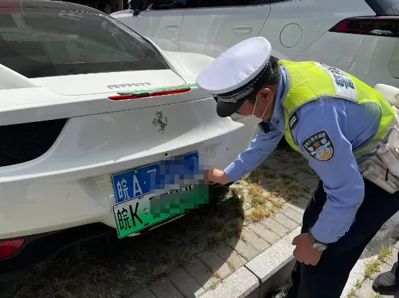 法拉利跑车悬挂新能源车牌