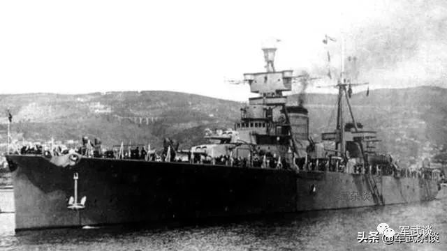 (该照片由巡洋舰“加里波第”号船员拍摄,是马塔潘角海战为数不多的照片之一。从左到右分别为“扎拉”号,“波拉”号,“阜姆”号以及“阿布鲁齐公爵”号,其中“阜姆”号被喷上了涂装,所以看起来暗一些。)