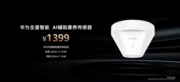 据了解,华为全屋智能AI辅助康养传感器于5月15日16:08,在华为全屋智能授权体验店开启预售,售价1399元。