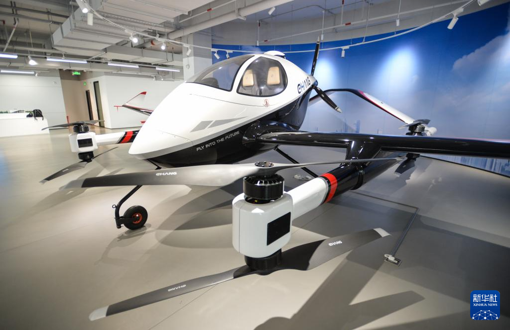 这是5月14日在亿航智能设备(广州)有限公司展厅拍摄的VT-30长航程载人级自动驾驶飞行器。