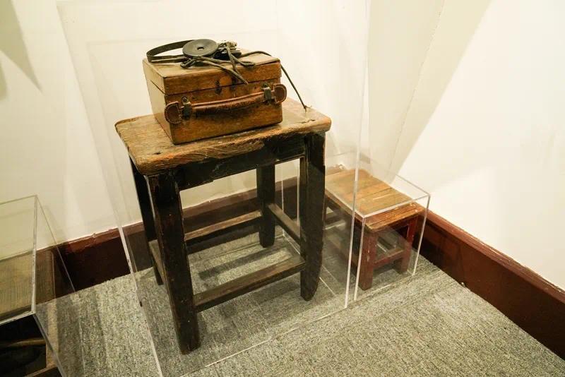 继续向北而行,寻访团来到了黄渡路107弄15号的一栋普通三层民居——这里是李白烈士故居,也是他最后工作生活的地方。李白是党隐蔽战线上的一位英雄。1937年,李白来到上海,长期从事党的秘密电台工作。他曾先后三次被捕,但始终冷静机敏、坚贞不屈,为抗日战争胜利和新中国成立作出巨大贡献。75年前的5月7日,离上海解放仅有20日,李白烈士牺牲,年仅39岁。李白发电报的位置,就在三楼一个狭小的厨房间内。当时,他把电报机放在凳子上,自己则蹲坐在旁边的一个小板凳上发报。望着依然静静被安放在凳子上的发报机,大家仿佛能看到李白烈士蹲在角落秘密发报的样子。