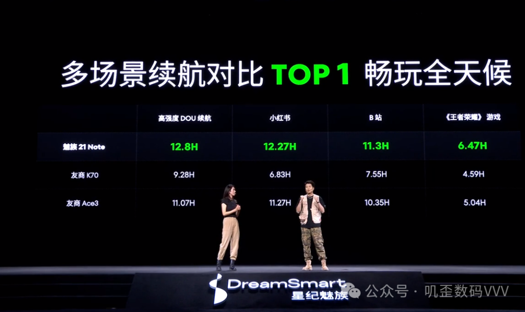 魅族 21 Note使用骁龙8 第二代芯片,官方表示CPU性能提升了37%,GPU性能提升了42%,同时还降低了功耗。算法方面是推出了游戏模式,在充电续航上,魅族 21 Note搭载了5500mAh电池以及66W快充,全面兼容市面主流USB PD通用充电协议,续航对比红米K70以及一加Ace3都要更强。