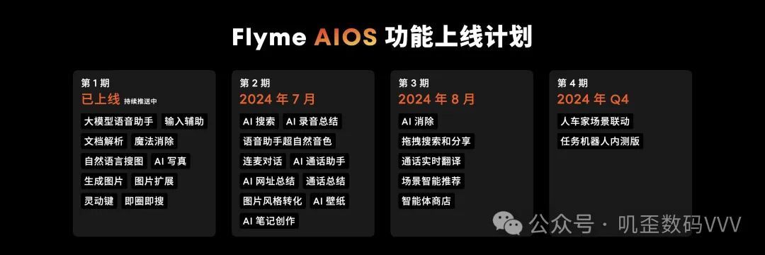 个性化外观上也有新变化,新增十几种字体样式和插件,用户可以自行组合设置。Flyme AI OS 首批内测报名活动将于下周开启,分为4期。