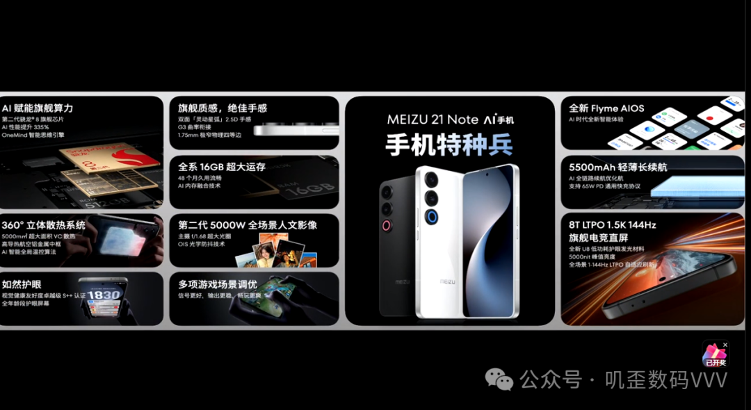 魅族在今天下午举行了新品发布会,带来了魅族21 Note,同时还发布了全新Flyme AIOS、魅族 LIVE AI 真无线 Hi-Fi 降噪耳机等新品。下面我们一起看看本次发布会的详细信息。