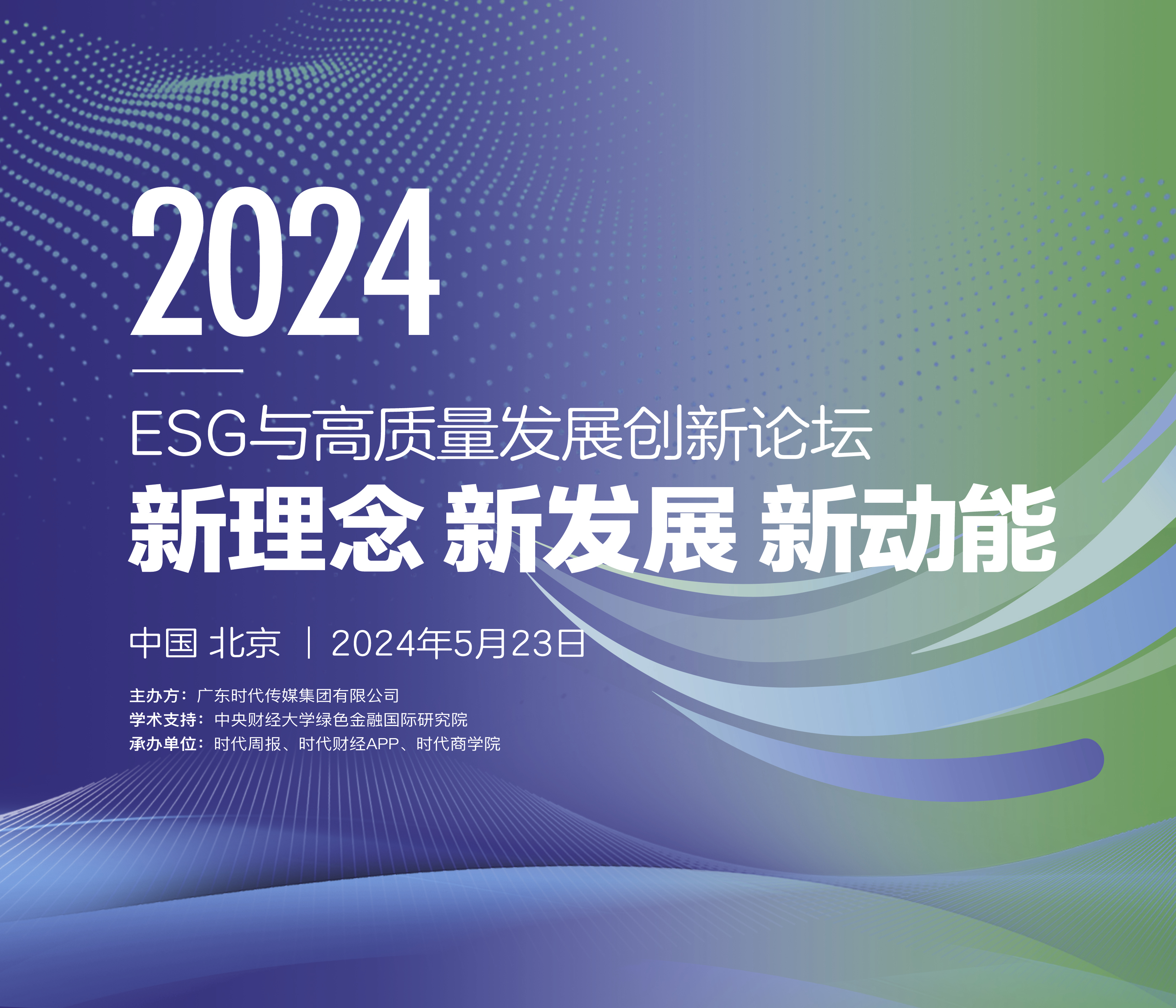 5月23日下午2时,“ESG与高质量发展创新论坛”将于北京万达文华酒店举行。此次论坛由广东时代传媒集团主办,中央财经大学绿色金融国际研究院提供学术支持,时代周报、时代财经APP、时代商学院承办。论坛以“新理念 新发展 新动能”为主题,汇聚智慧与力量,促进各方沟通与交流。届时,来自各领域的专业人士齐聚一堂,立足当下经济变化和行业调整,聚焦ESG前沿发展动态,共同探讨高质量发展下的ESG实践,持续推动ESG方法论的完善。