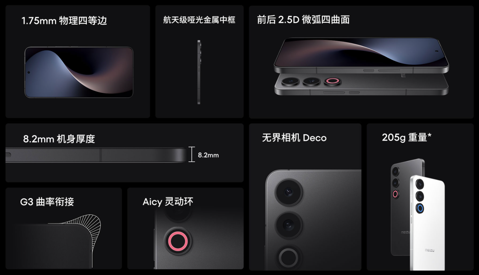 5 月 16 日,魅族 21 Note 正式发布。这款产品延续了魅族的家族式设计,一样采用了后置三开孔的设计,保留了环形闪光灯(Aicy 灵动环)和无界相机装饰设计,也一样还采用了直屏+直框+直面后盖的元素。不过,尽管自称为 Note 机型,但它的屏幕尺寸为 6.78 英寸,比例为 19.8:9。