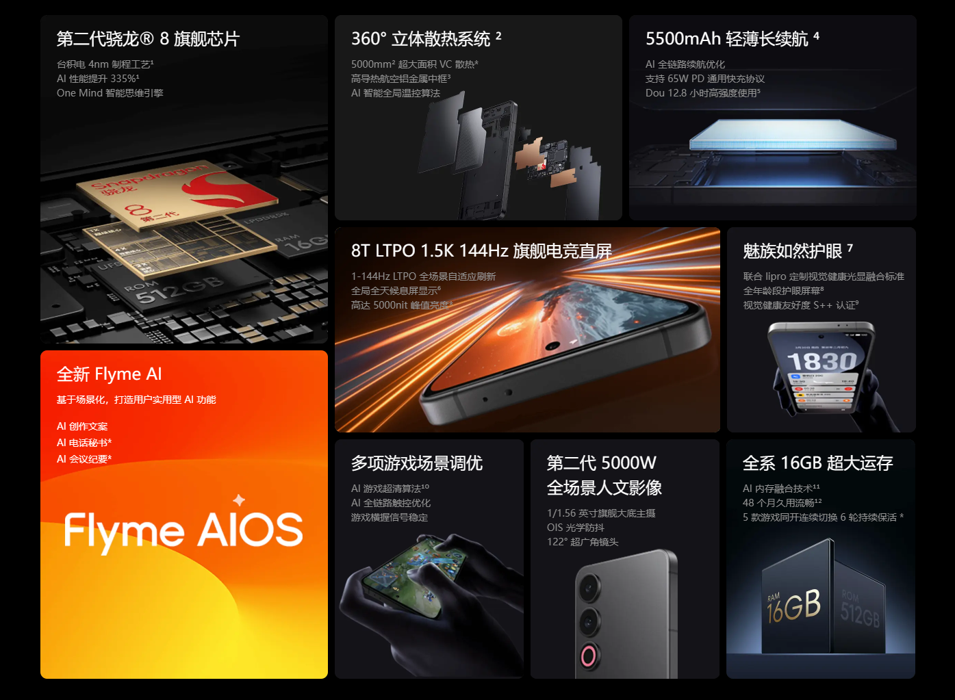 具体的配置方面,魅族 21 Note 搭载了第二代骁龙 8 旗舰平台,性能表现比较不错;续航方面则是有 5500mAh 大电池,并且还支持了 65W PD 快充;影像方面则是采用了 5000 万像素的主摄和 1300 万像素的超广角组成双摄。