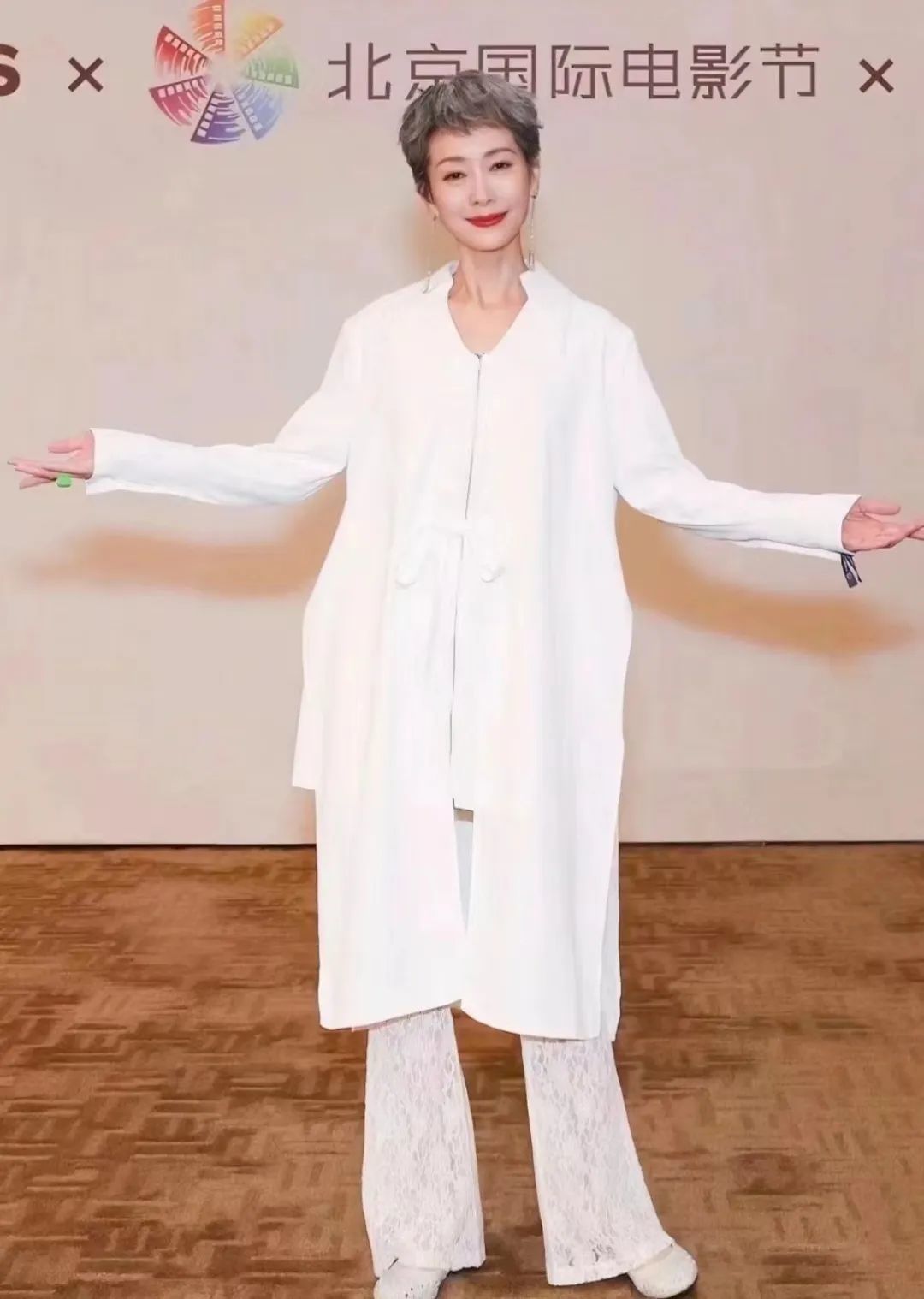 与赵雅芝细腰瘦腿的淑女风格不同,叶童的着装是随性甚至粗犷的,就像不掩饰白发一样,她也从不掩饰自己已经不够纤细的腰身,以及人到了一定年龄,无论多么努力,都多少会有的小肚子。