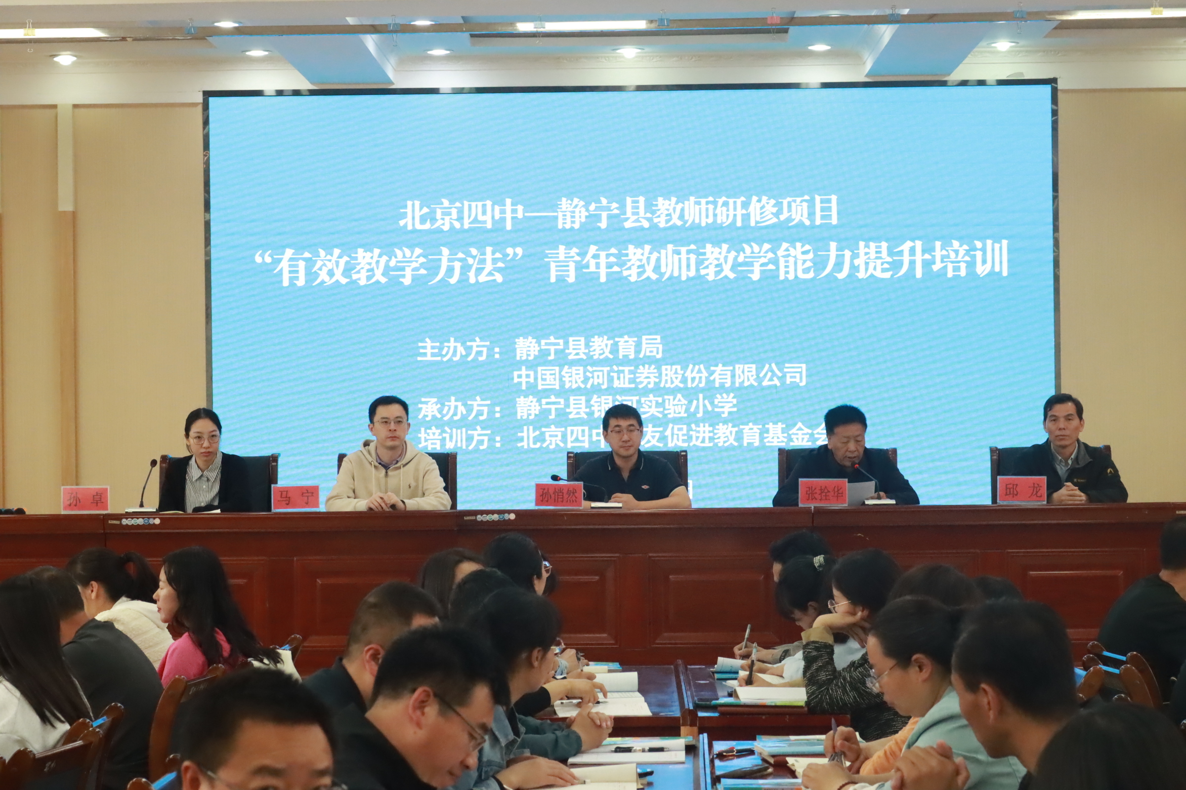北京四中校友促进教育基金会副秘书长孙悄然、教师发展中心顾问马宁,静宁县教育局、人社局等相关负责人出席开班仪式;静宁县小学数学学科青年教师共计50余人参加了培训。