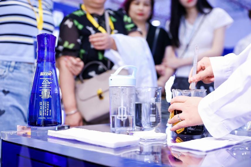 “活性物成分含量越高的洗衣液,清洁效果更佳,单次洗衣所需用量也更少。”在蓝月亮洗涤科技馆中,讲解人员通过一个个趣味横生、通俗易懂的实验,向现场用户展现代表着“未来洗衣科技”的「浓缩+」生物科技「至尊洗衣液」的“神奇之处”。