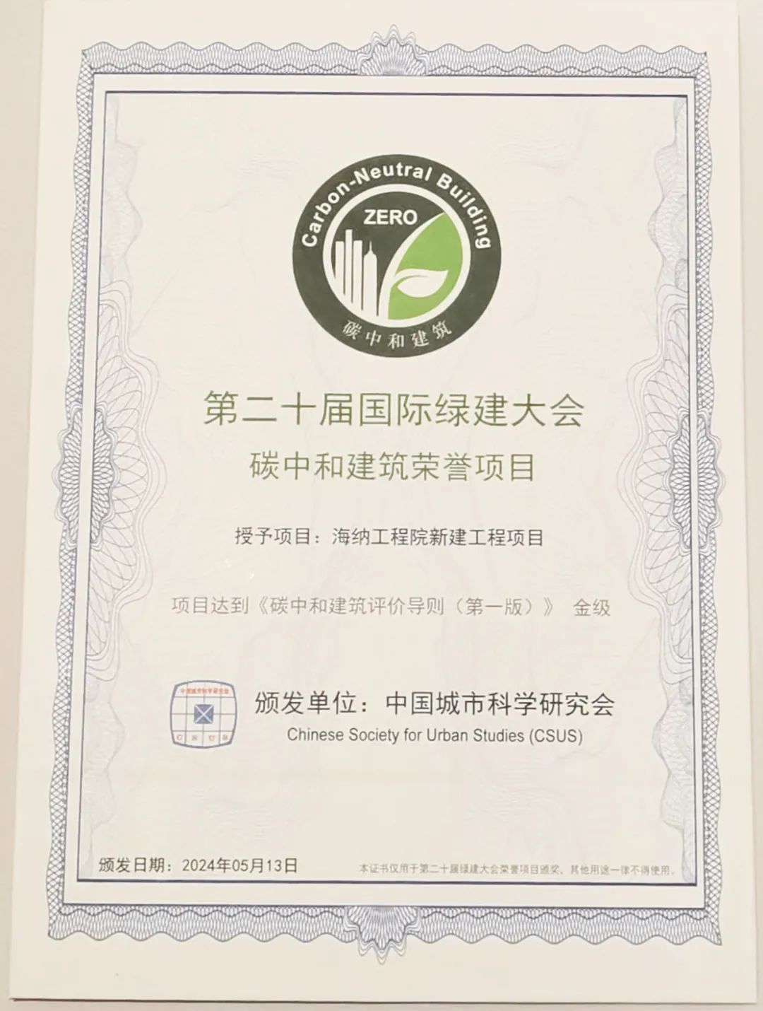 据悉,作为上海市第二批低碳发展实践区,真如地区海纳小镇的先导项目,海纳工程院已取得国家绿色建筑三星级预评价证书和金级碳中和建筑标识证书,并被联合国人居署列为中国城市与企业在低碳发展方向的优秀实践案例。