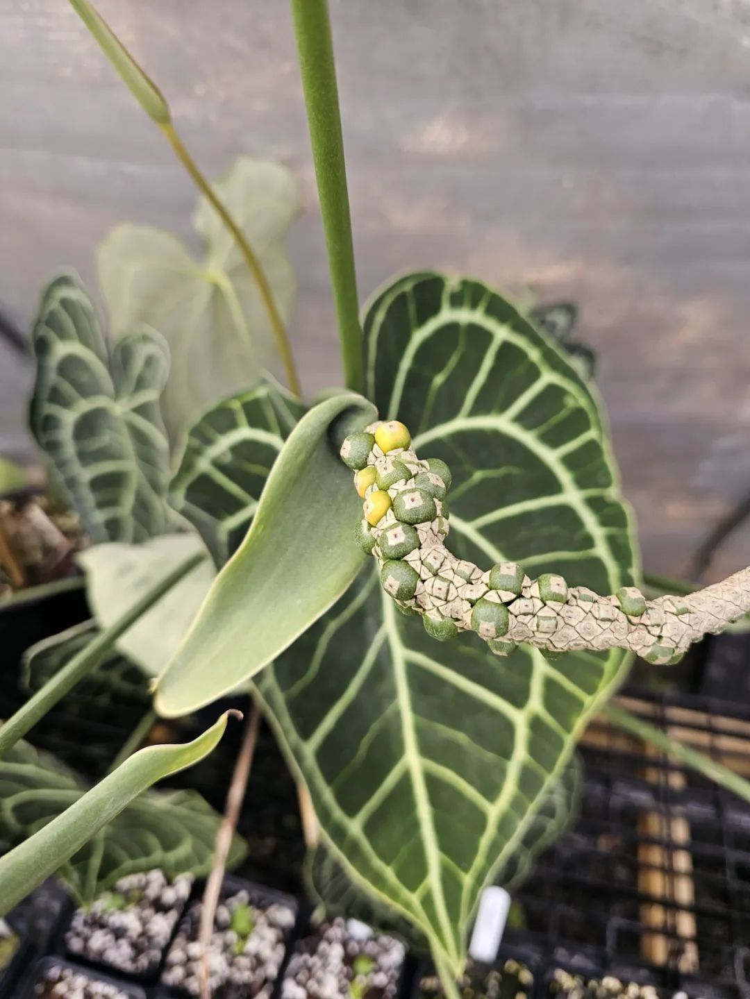 克莱恩花烛也可以开花,但它的花特别小,而且是淡绿色的,并没有太多的观赏性,它主要还是观赏叶子的。