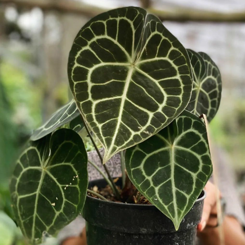克莱恩花烛相比普通的水晶花烛要更加好看一些,它的叶子更大,叶子是心形的,叶片上那白色的叶脉特别显眼。它的价格越来越便宜,受到很多花友的青睐,这种热带观叶植物在室内也可以养好。