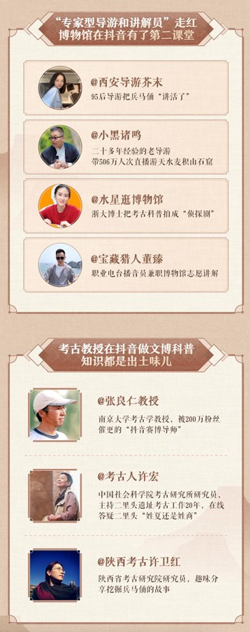 报告显示,一批专家型导游和讲解员在抖音走红,开辟了博物馆文化普及的“第二课堂”。