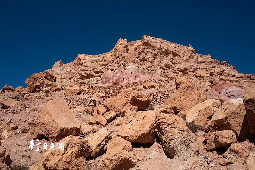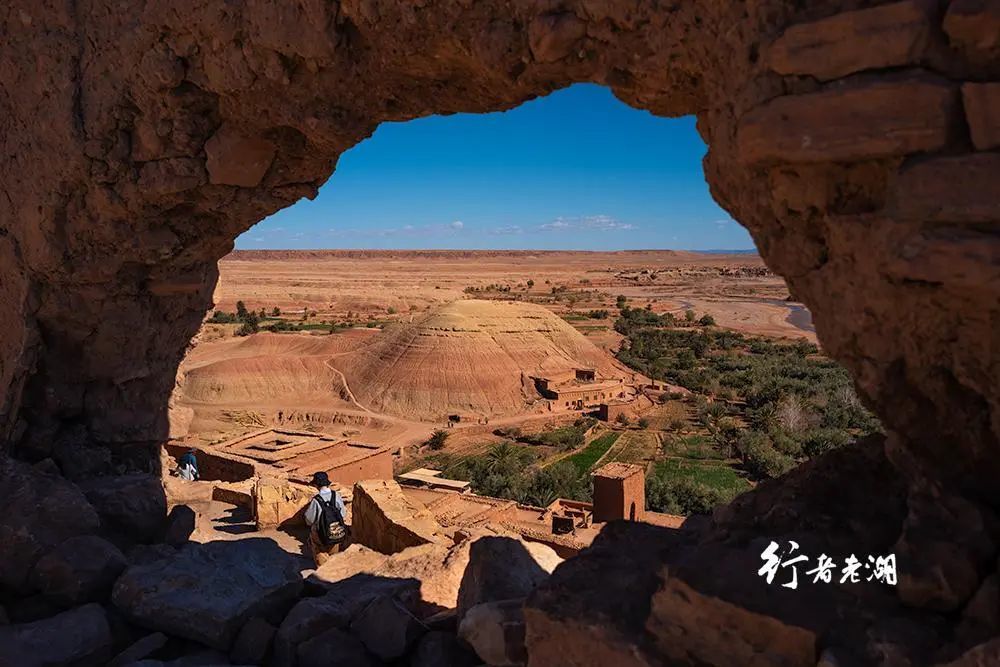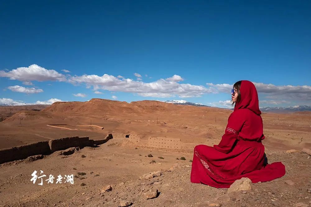登顶阿伊特本哈杜最高点,一座孤独的土石堡垒耸立在眼前,它是古老的粮仓兼瞭望塔。四周的建筑已不复存在了,或风化,或被毁坏,只剩下少许断垣残壁。荒漠之外,雪山隐约可见……