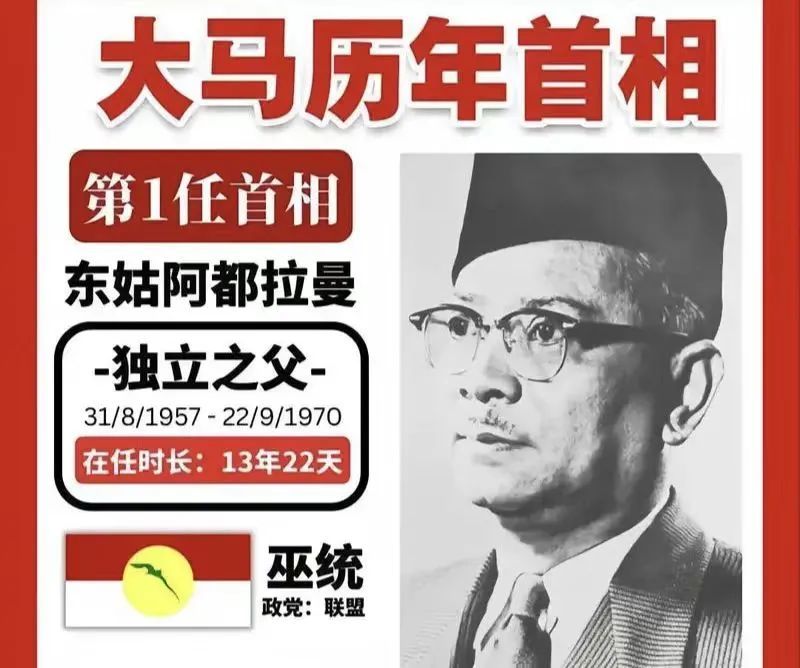 独立之初,马来人的巫统、华人的马华公会和印度人的国大党组成的联盟在选举中获胜。巫统在联盟中处于领导地位,马华公会和国大党也得以分享权力。