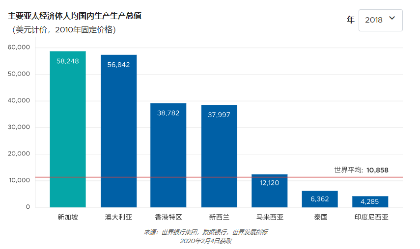 1970到1990年,马来西亚人均GDP从385美元增至2442美元。一旁的华人主体国家新加坡,在同一时期凭借转口贸易发展更快,人均GDP在1990年达到1.2万美元。