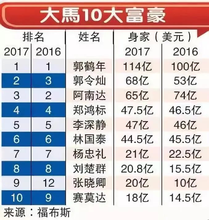 同期,华人对马国财富的占有率从72%降到60%,但华人依然掌握着马来西亚的经济命脉。马来西亚财富排行榜中,华人常年占据80%的名额。