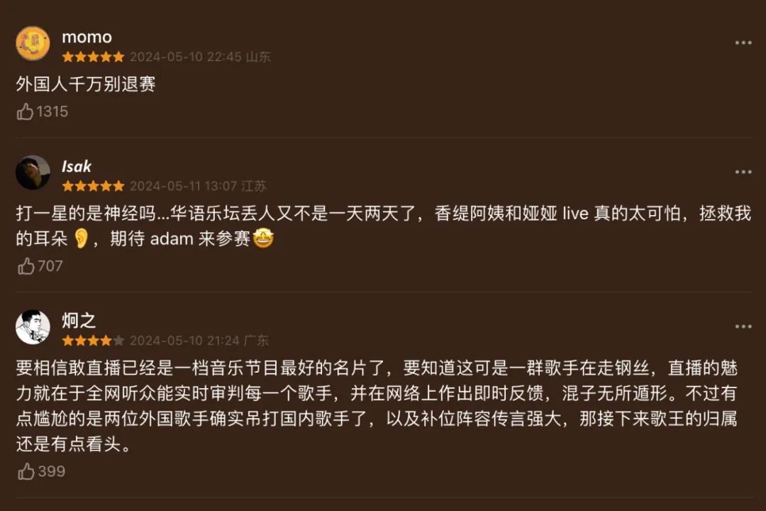 “仨能唱的!速来!”更让让网友们纷纷在各位歌手的评论下“摇人儿”。