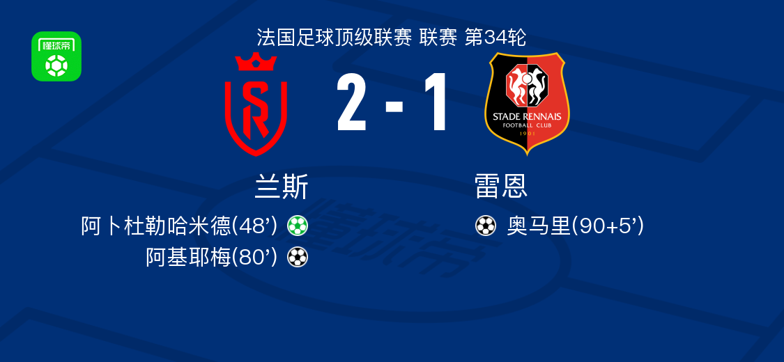 5月20日,法国足球顶级联赛迎来了第34轮的比赛,兰斯队在主场迎战雷恩队。比赛中,兰斯队的阿卜杜勒哈米德和阿基耶梅分别攻入进球,而雷恩队的奥马里也有一次精彩的进球。最终,兰斯队以2-1战胜了雷恩队。